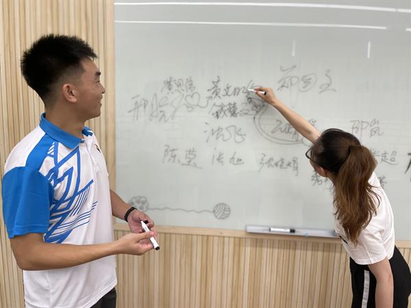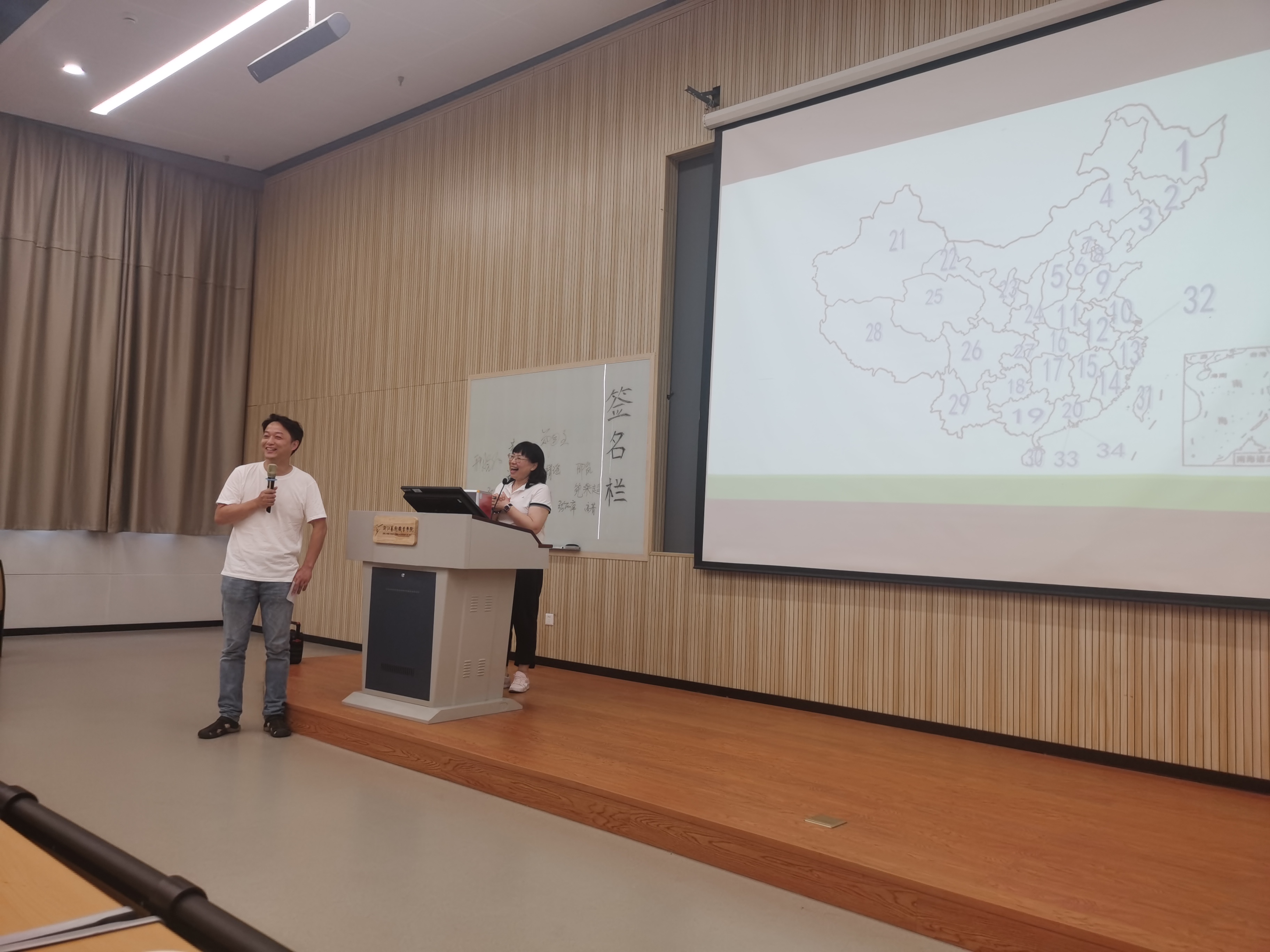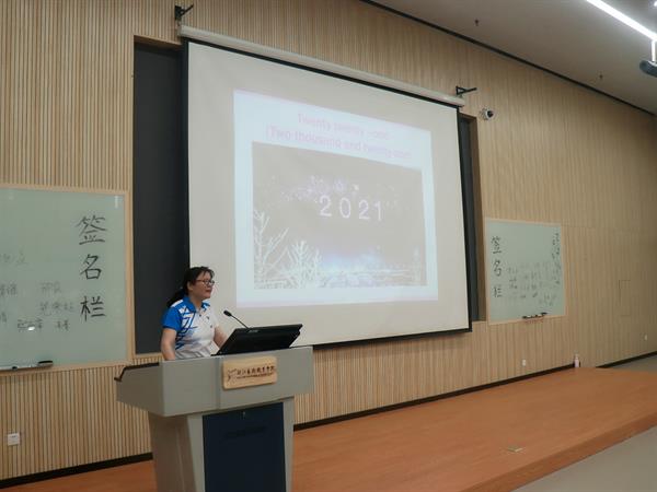 莫道桑榆晚,为霞尚满天。每位老师的事业都始于讲台,辛勤耕耘数十年,如今功成身退的终点也应该是讲台。班会上,三位退休教师当堂授课,在阶梯教室的讲台上站好最后一班岗、上好最后一堂课,为自己的教育事业画上完美的句号。体育老师黄文明先以游戏“举左右手”热身,再现场教授太极拳;英语老师郑斌结合时下建党百年庆典视频,教会大家翻译日常生活中常见的用语;地理老师宋懿将全国各省份标号,以“抽奖”的方式展开教学,抽中号码的“同学”介绍号码代表省份的地理特征、风土人情。三位老师台上绘声绘色、讲练结合、师生互动,就是他们几十年教学生涯本来的样子。三堂课中,贯穿的是三位教师丰富的教学经验,台下的“同学们”也积极配合。