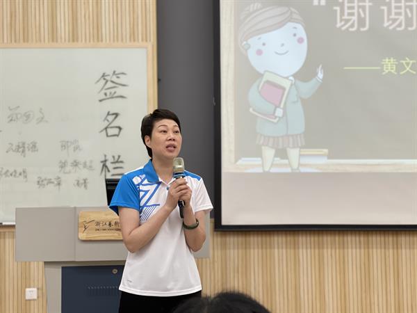 人事处戴闵青副处长为退休教师颁发退休纪念奖杯。她高度肯定了三位退休老师的职业精神,诲人不倦、无私奉献,培育了无数优秀的学生;立足岗位、勤勤恳恳,推动了学校的快速发展。同时,她感谢基础部全体教师在推动学校“双高”建设中的辛苦付出和卓越贡献,勉励所有新老师要以老教师为榜样,再接再厉,为学校的教育事业再创辉煌。