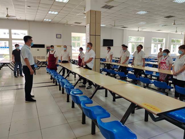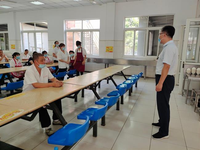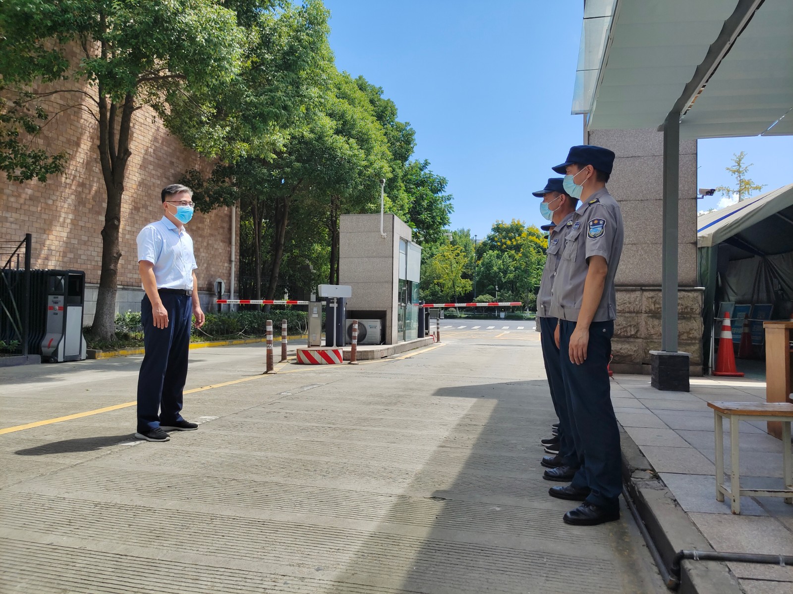 薛亮代表校党委对校经警队队员和食堂工作人员暑期坚守岗位,恪尽职守表示慰问,对他们在工作岗位中默默奉献,不辞辛劳的精神给予赞许。他要求经警队队员时刻保持警惕,为新学期开学新生报到等事宜做好安全保障等工作。食堂工作人员做好防疫工作,进行食堂消毒、消杀等,保障食品安全,为新学期师生返校、新生入学提供优质服务。
