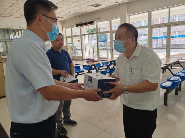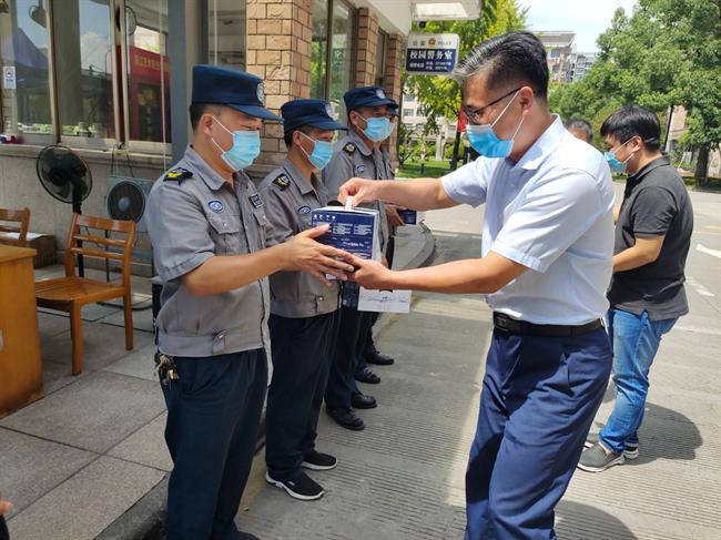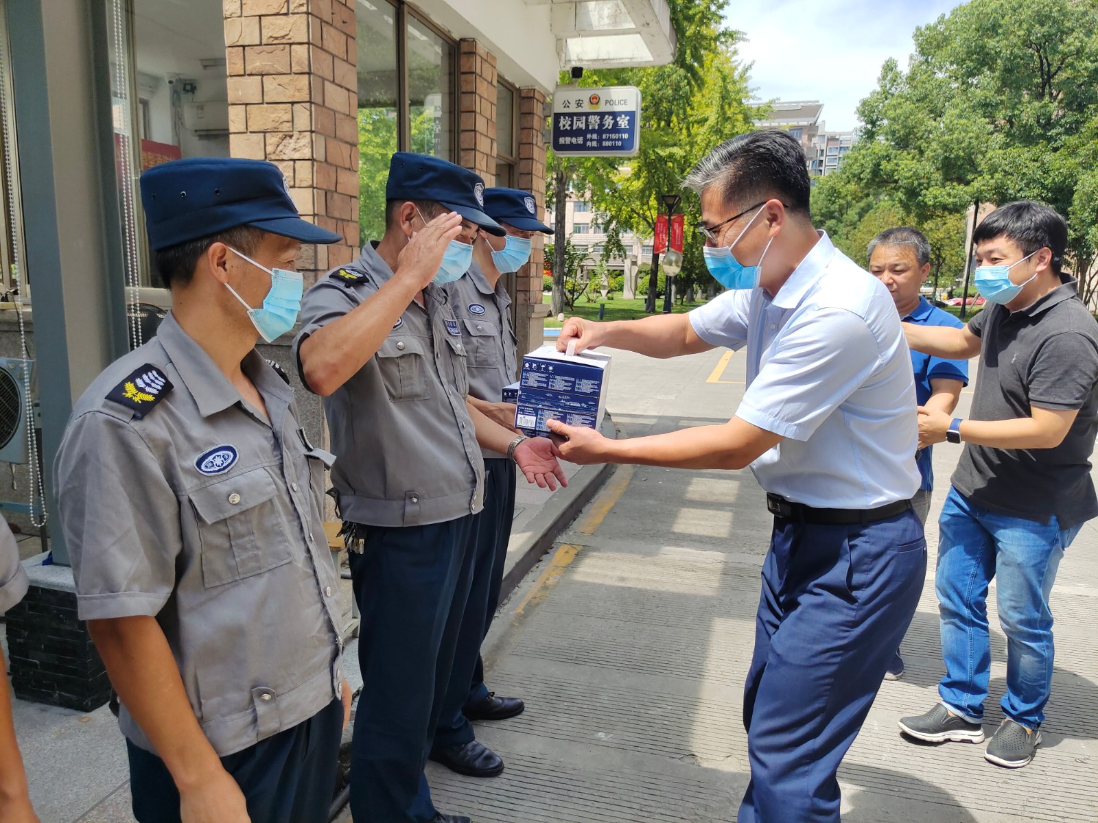 炎炎烈日,薛亮代表校党委为经警队员和食堂工作人员送去清凉。