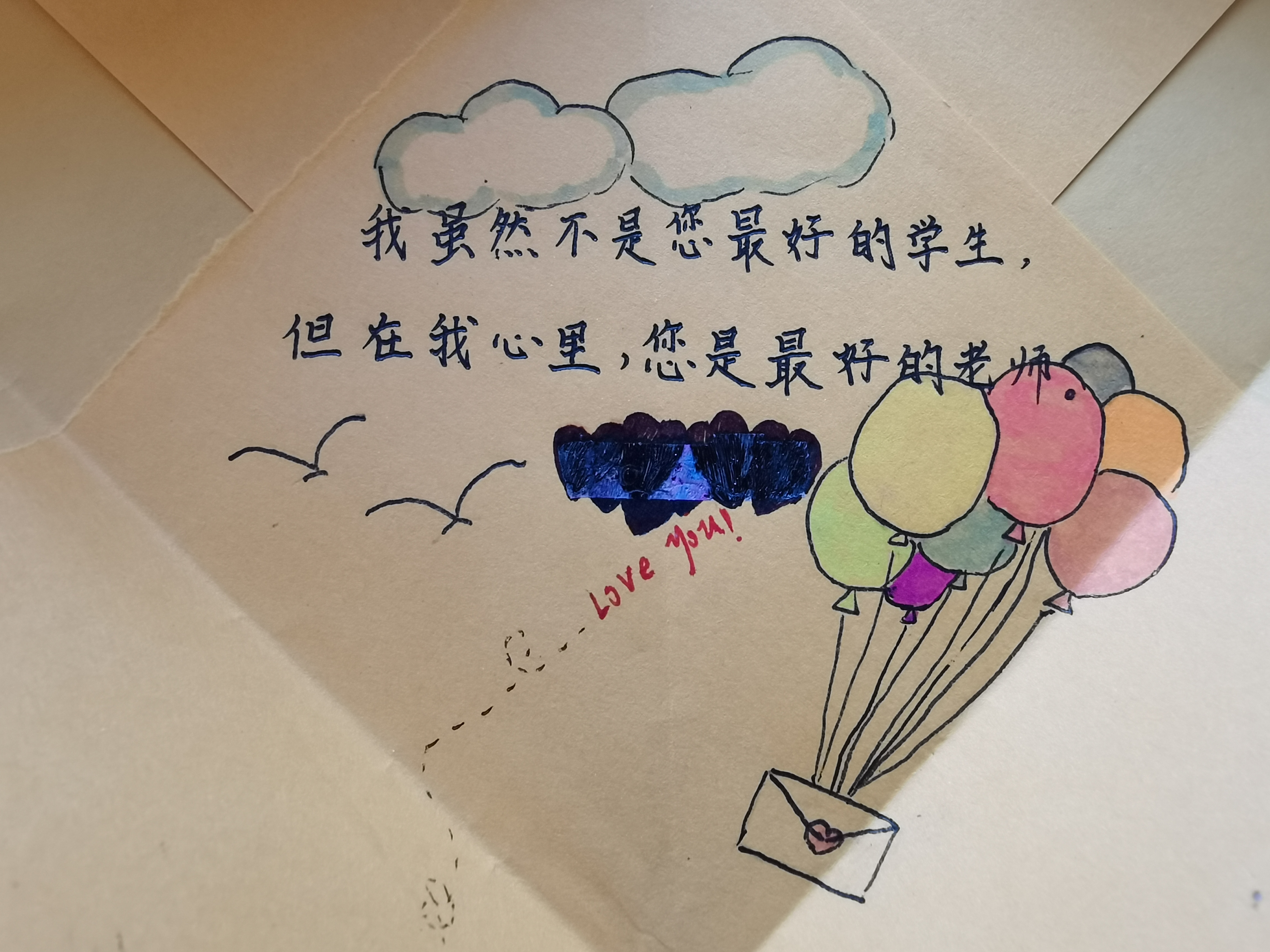戏曲学院一直坚持“尊师重教、知艺达礼”。在教师节前夕,同学们早早地开始写祝语、折爱心,画贺卡,等待教师节的来临:老师感谢您出现在我生命里给予我知识,让我成为了更好的人;父母赋予了我看世界的眼睛,而您丰富了我看世界的维。我虽然不一定是您最好的学生,但在我心里,您是最好的老师。