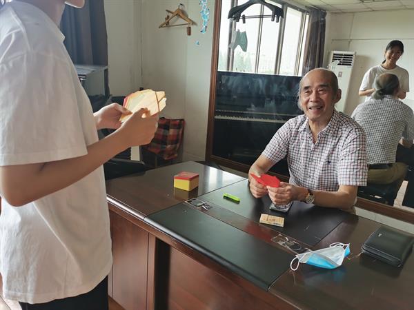 戏曲学院的学生,将每一颗饱含满满祝福的爱送到学院每一位老师手中。