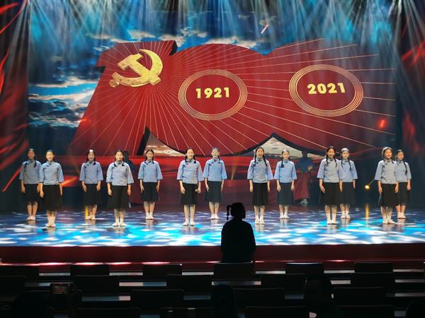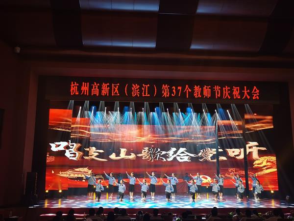 在戏曲学院教师苏苏、张聿的带领下,19小百花班在杭州高新区(滨江)地37个教师节庆祝大会上为滨江区的老师表演唱支山歌给党听。
