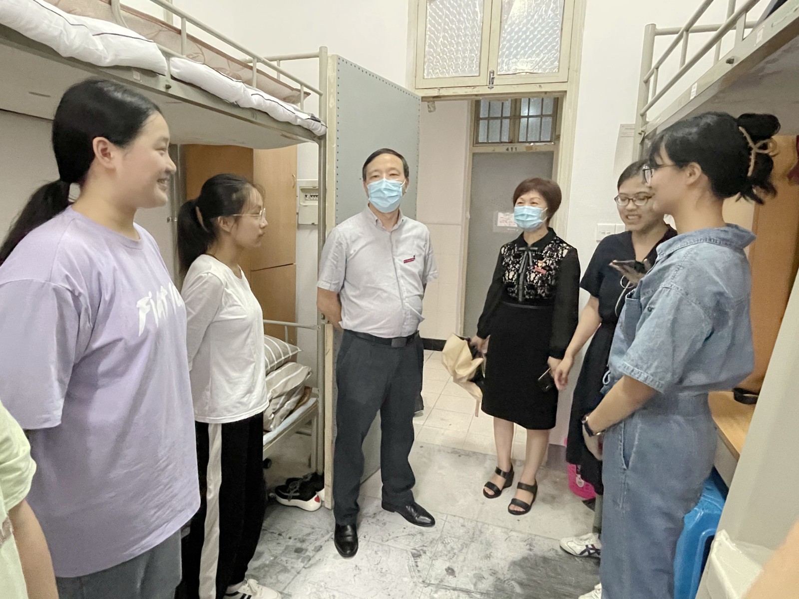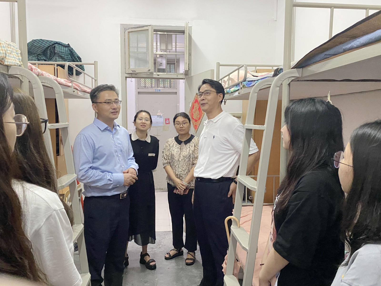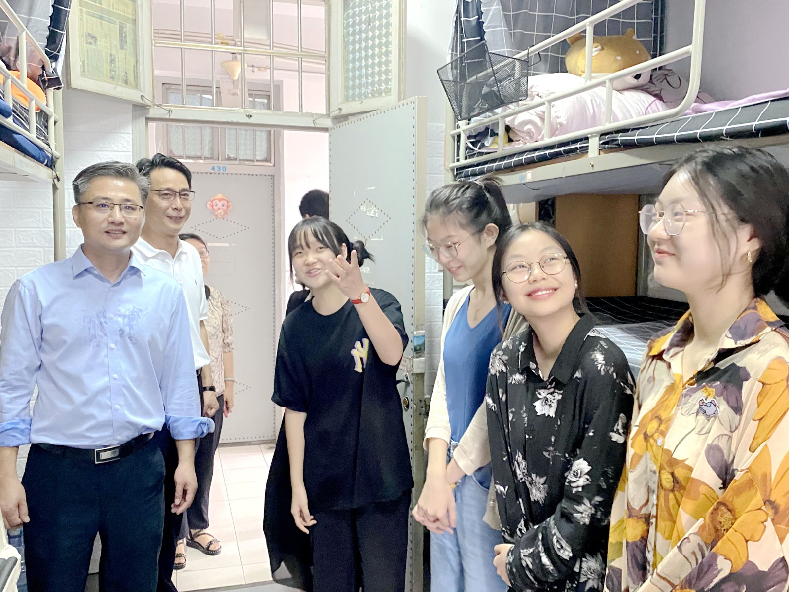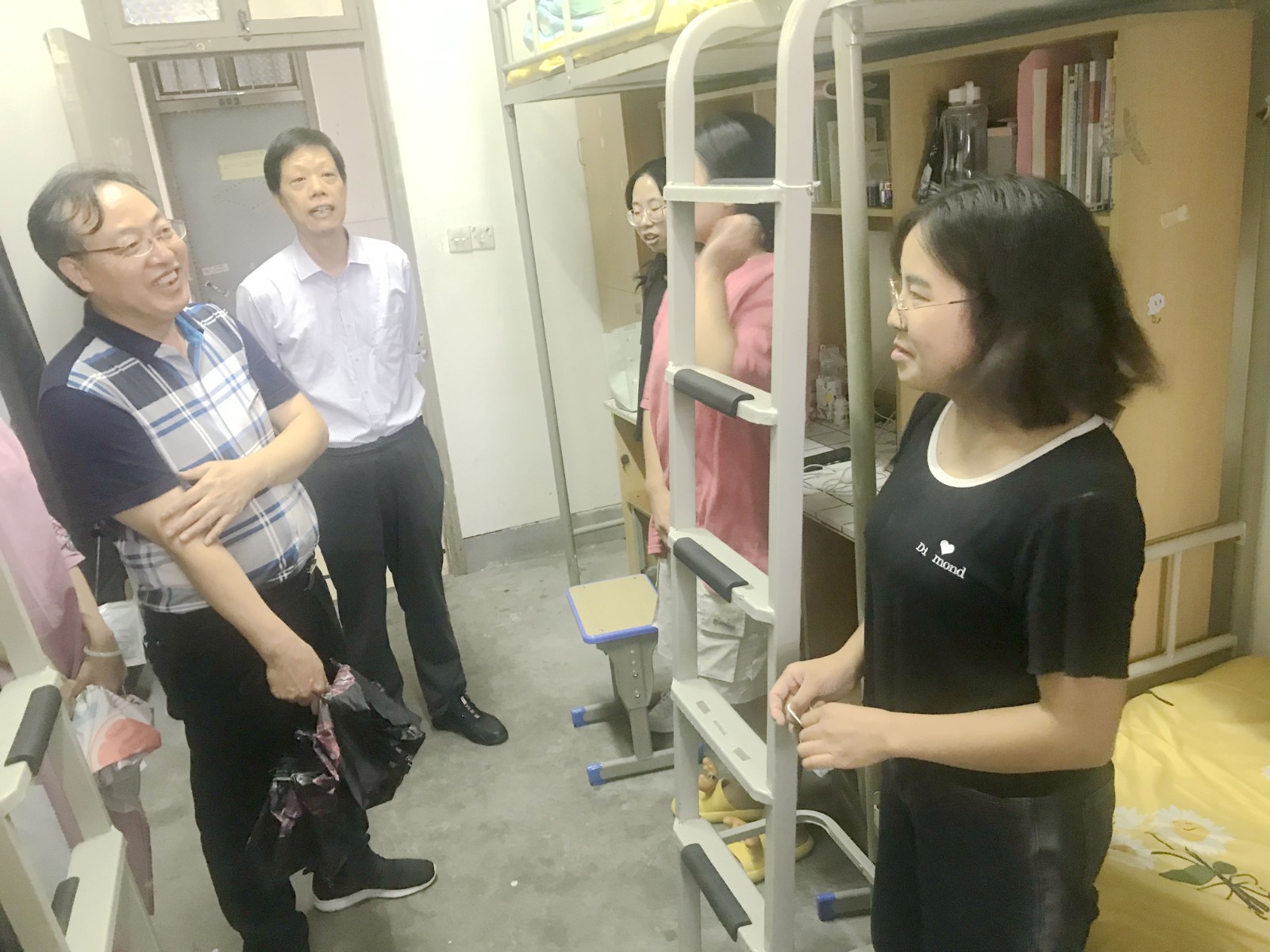 薛亮走访立志园2号楼,走访过程中,亲切询问新生的生活情况和家庭情况。他叮嘱新生把浙艺当成家一样,尽快适应大学生活,学校尽力为同学们创造好的住宿环境,有问题及时与老师交流。
