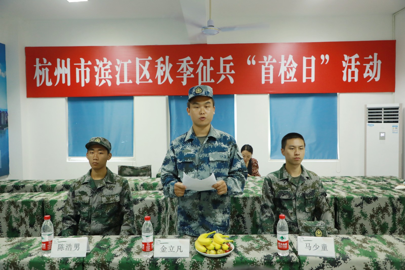 新兵代表金立凡发言,他对浙艺领导和老师们的精心栽培致以感谢,表示一定会勇担时代使命,发扬浙艺“求真 尚美 精益 修为”的校训精神,在今后的部队生活中勤于学习和训练,尽快从一名青年学生成长为一名优秀的军人,用实际行动报效祖国和人民。