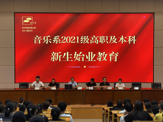 9月13日晚,音乐系在图信中心报告厅开展2021级高职及本科新生始业教育。系党总支常务专职副书记谢志勇,系组织员、辅导员、班主任及全体新生参加。系党总支专职副书记刘梦伟主持会议。