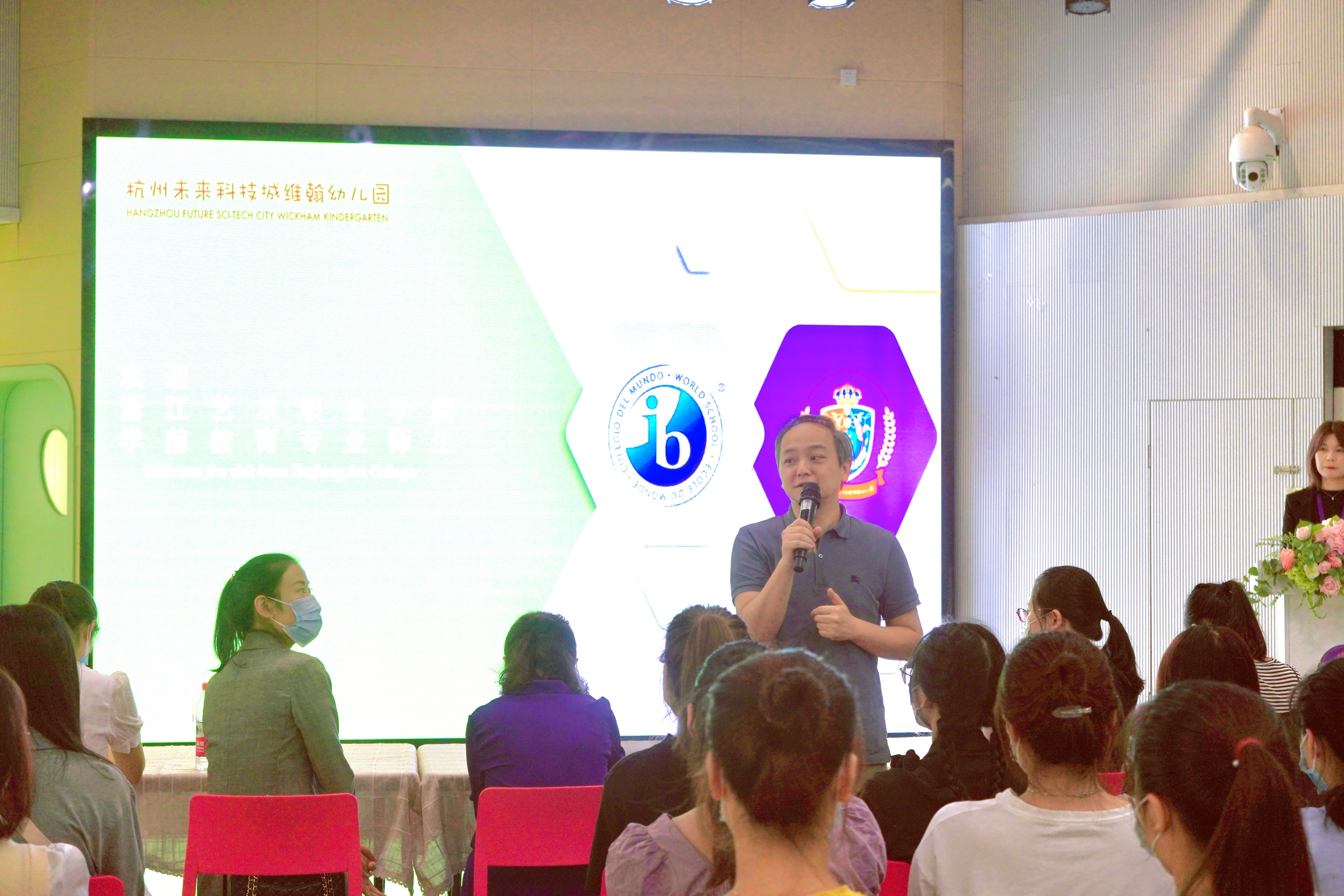当天下午,浙江省教坛新秀、学科带头人、杭州未来科技城维翰幼儿园园长兼书记陈辉作讲座。她介绍了杭州未来科技城维翰幼儿园的发展历史,重点讲述IB课程体系,传递了国际前沿的育儿理念,分享幼儿园的一日生活以及幼儿教师的成长心得。