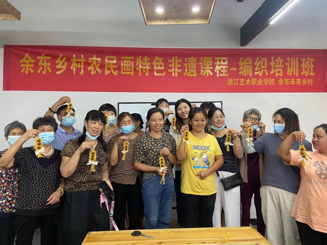 乡村振兴,浙艺在行动。文化管理系自与衢州市柯城区签订战略合作协议以来,暑期开展了一系列社会实践活动和调研,结合余东村"中国农民画之乡"的特点,确立了以农民画为元素的非遗研学课程开发和直播、文化类志愿活动为主要内容的服务思路。暑期通过师生团队反复调研与思考,设计开发了十门余东未来乡村非遗研学课程。8月25日首开《农民画水印木刻版画》课程培训,反响热烈,受到当地群众的称赞。通过培训农民讲师,将非遗课程植入农户,赋能余东农民画迭代升级,开发文旅文创项目,助力农民致富的模式得到了当地政府和农户的高度肯定。应当地要求,9月16日,文化管理系师生赴衢州余东村,再次开展服务。