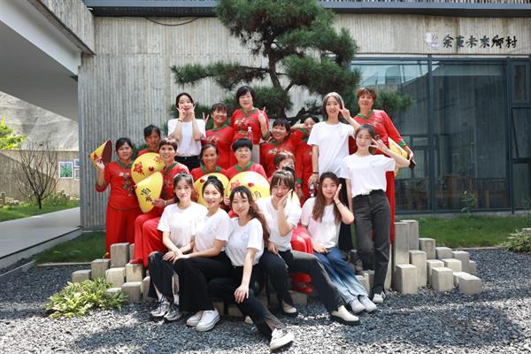 舞蹈队和直播带货队的师生同样在行动。文化管理系舞蹈队学生与当地妇女舞蹈队相互教学,交流分享,体验民间舞与现代舞的结合,感受传统与现代的碰撞。直播带货队师生延续暑期直播带货助农模式,继德门龙面和“南孔文创”后为余东村线上宣传当地特色产品金钱眉茶叶,直播获得2万余次点赞流量,浏览量持续攀升,带领村民走上“互联网+”的致富路。