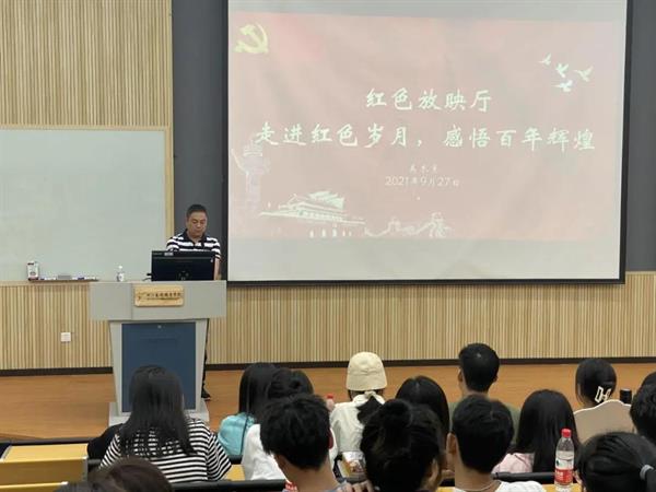 9月27日晚6点,党史学习教育之红色放映厅——“走进红色岁月,感悟百年辉煌”观影活动在阶梯一教室举行。活动由美术系组织员章彪主持。