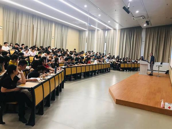 在题为“当我们谈论‘宋韵’时,在谈论什么”的讲座中,郑嘉励以高度精炼的语言解读了宋韵文化。他提到,浩然正气的爱国主义是宋韵第一条主旋律,爱国主义也是表现南宋军事、政治历史的最重要的主题词;宋韵所突出的精神内核是以天下为己任的士大夫精神;经世致用的“浙学”思想、放眼天下的海外贸易;郑嘉励也从典雅敦厚的士大夫生活美学、丰富多元的市民生活、奠定后世审美范式的文化艺术及以三大发明为代表的科学技术这些方面多层次、多维度低为师生讲解宋韵文化究竟是在谈论什么。
