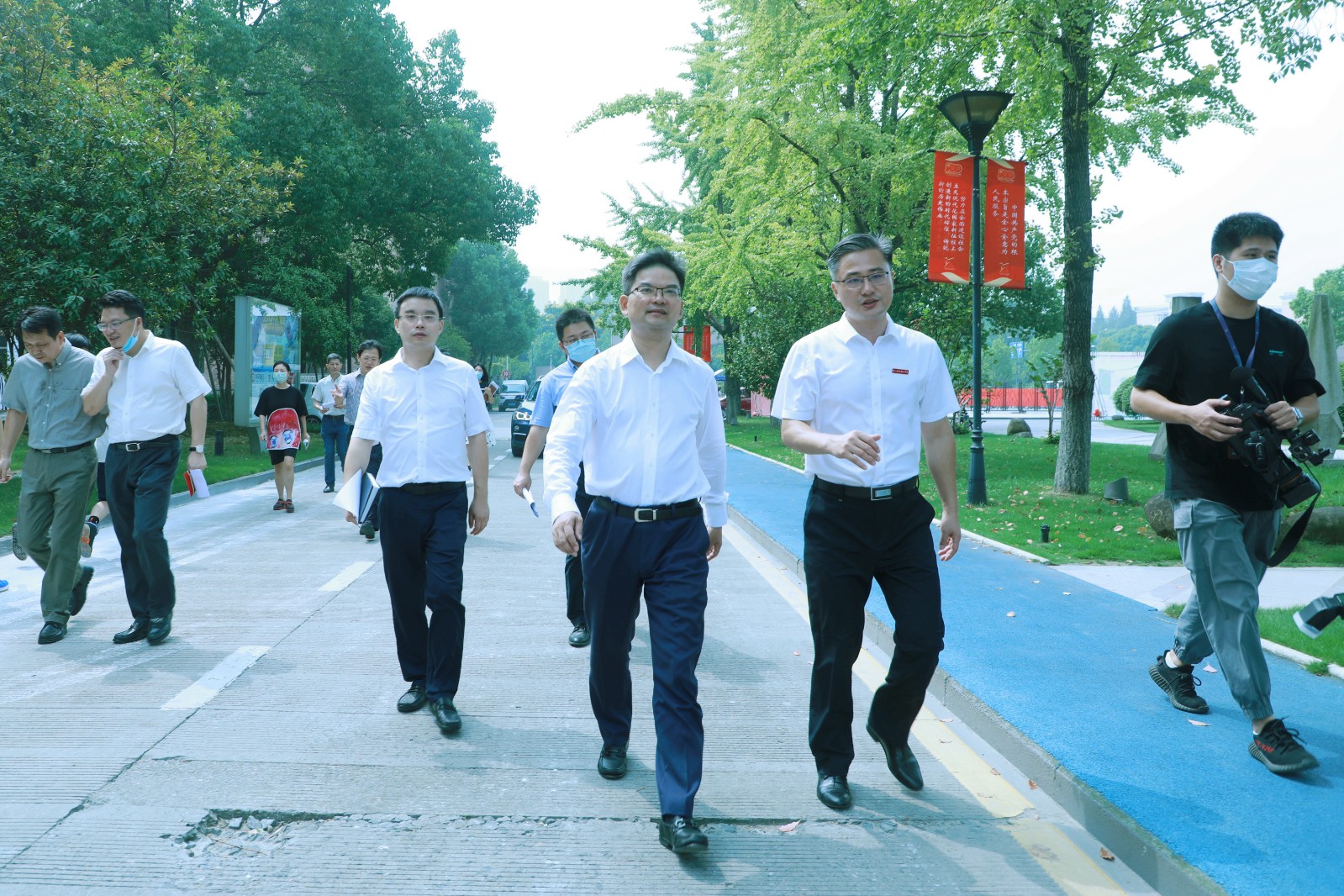 96日上午,开学第一天,也是37个教师节来临之际,杭州高新区党工委、滨江区委副书记、高新区管委会主任、滨江区区长李志龙一行来我校进行教师节走访慰问,滨江区委常委、宣传部部长沈建,滨江区人民政府办公室、区民政局、区妇联、区教育局相关负责人陪同慰问。我校党委书记薛亮、党委副书记夏开堂、副院长沈军甫,以及相关部门负责人热情接待了滨江区领导一行。