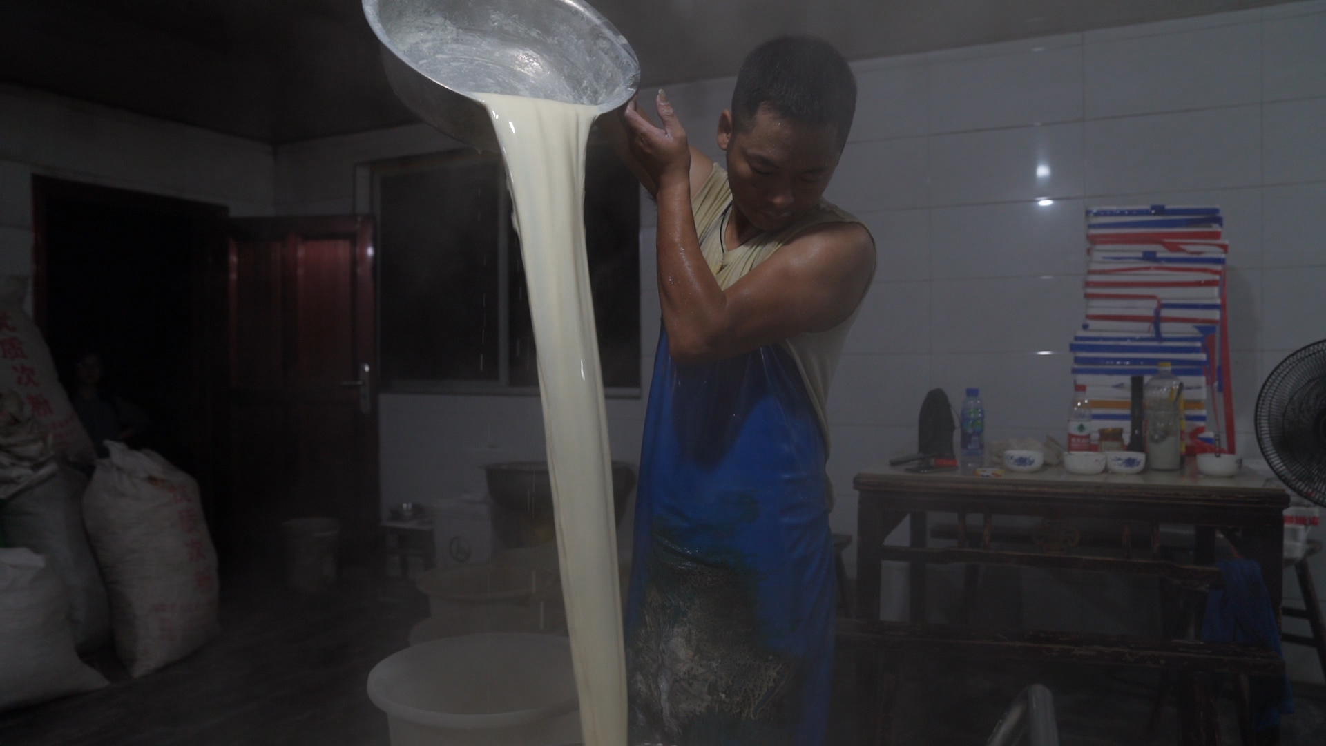 通过调研了解到,与普通的豆腐相比,廿八都豆腐显得更硬一些,自带一股炭烧的香味。机器磨浆,土灶柴火大锅煮豆浆,以石膏凝结与现在所有手工制作的豆腐一样,廿八都豆腐的制作过程其实并无特殊。豆腐好吃,在于两点:豆子好,采用本地优质新鲜大豆;水好,从做豆腐到炖豆腐,取用的都是高山泉水。如此做成的豆腐极其鲜嫩、可口,具有浓郁的乡土味,成为廿八都特色风味。在一天的实地走访与参观调研结束后,大家讨论决定了拍摄的详细方案与细节处理。