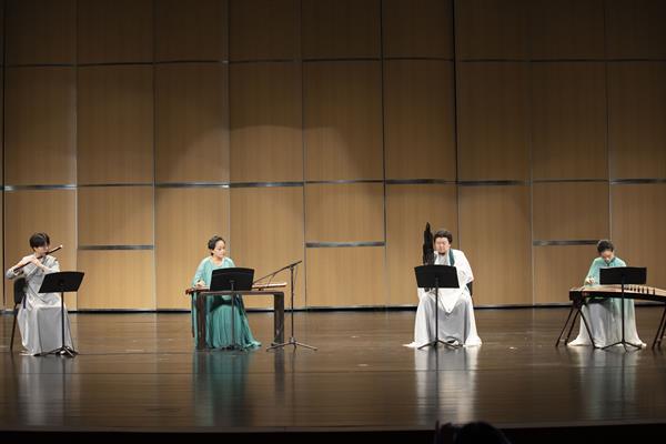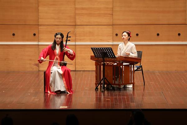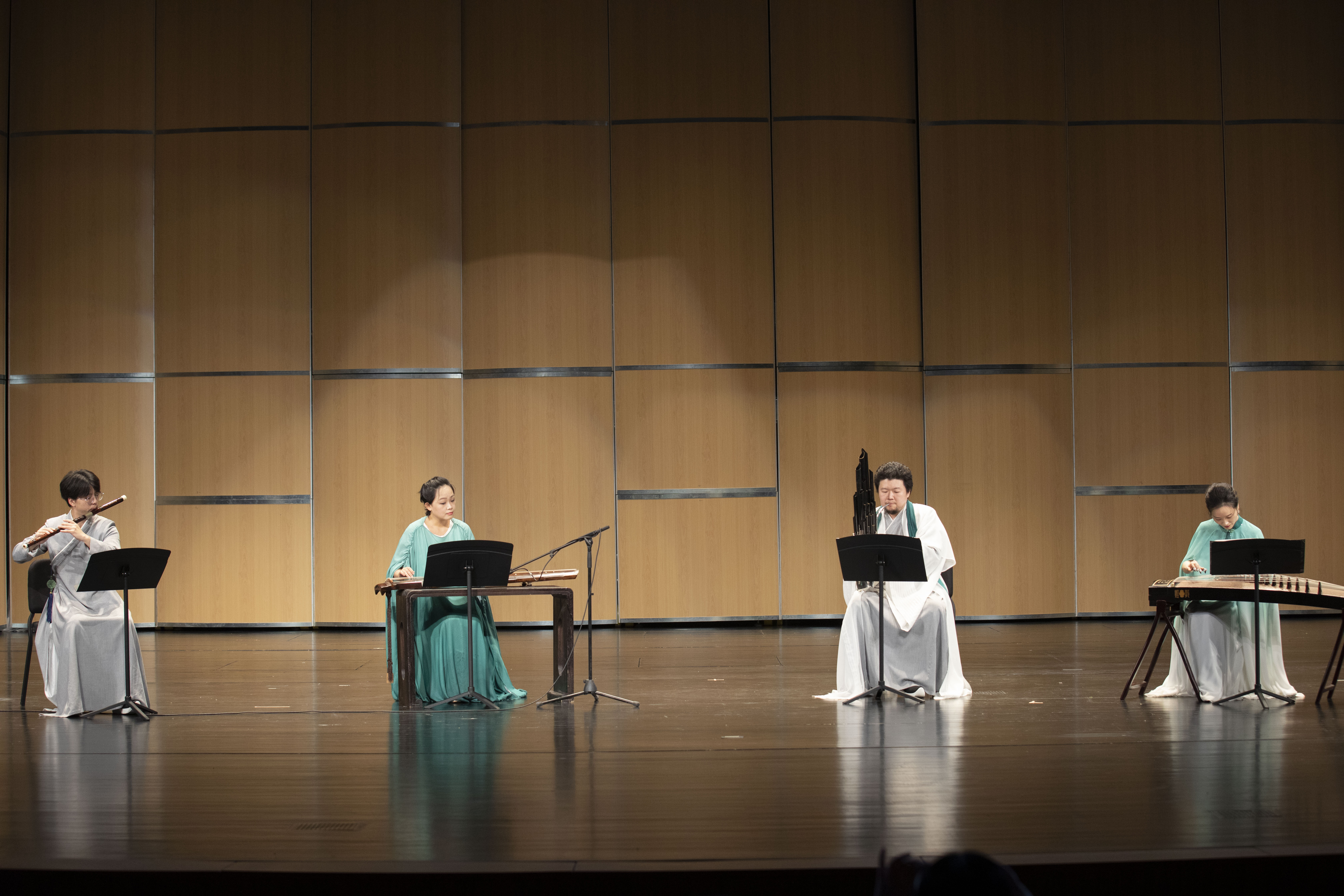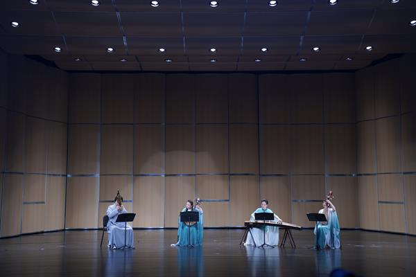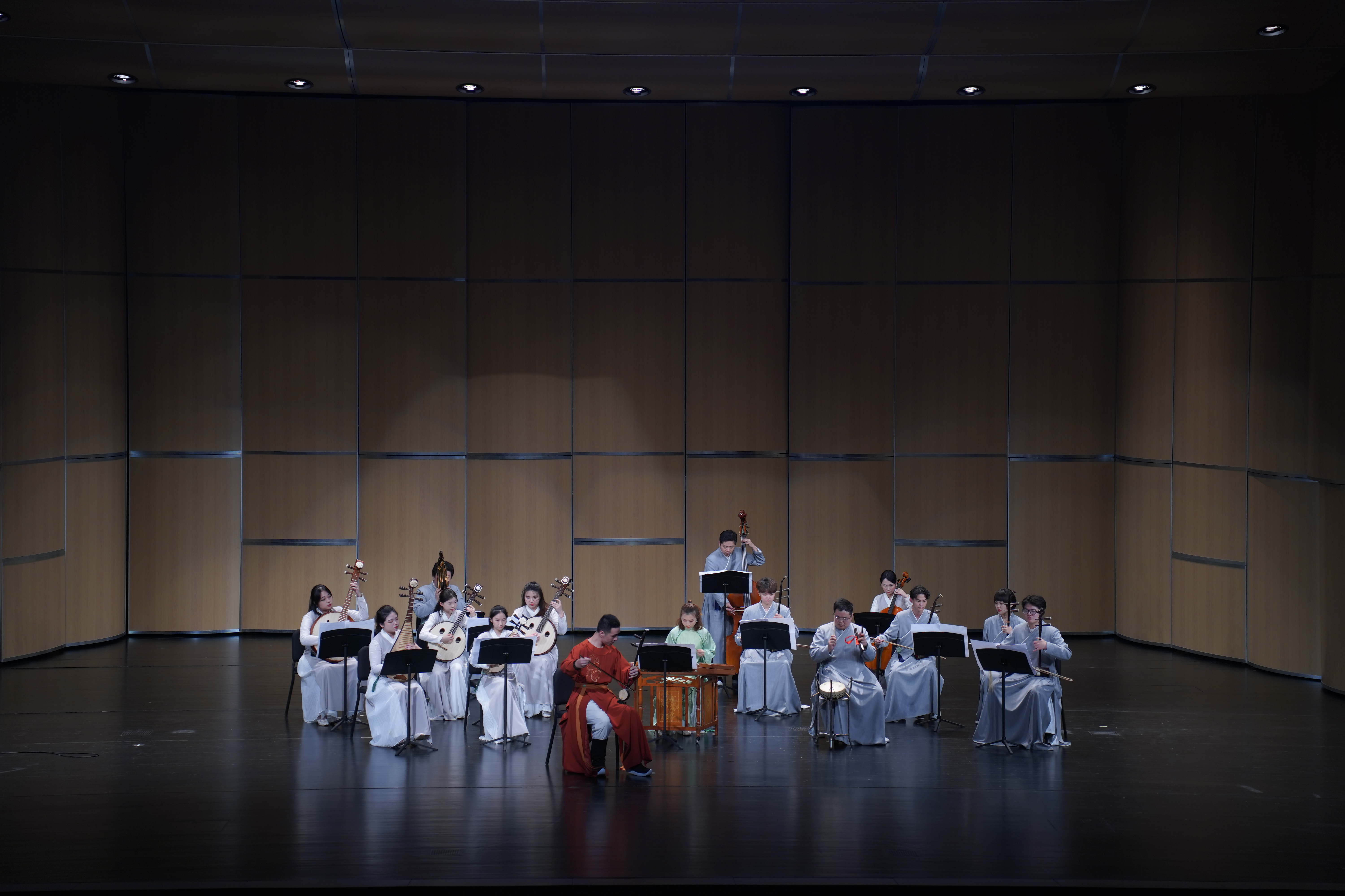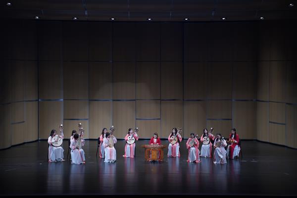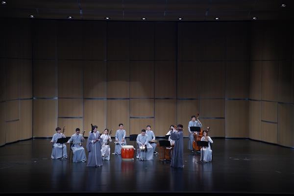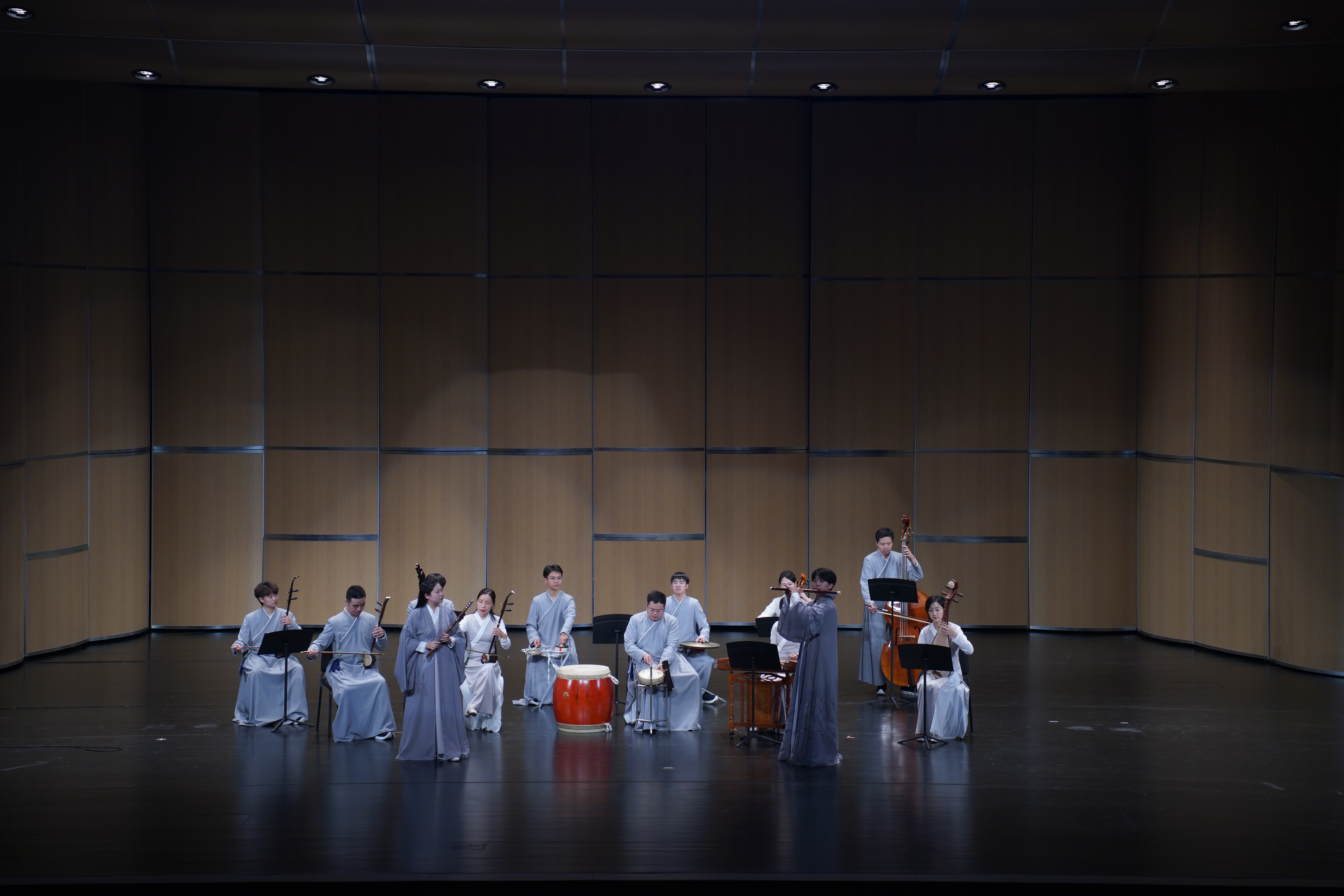 此次巡演,每场演出的曲目挑选都作了精心安排。围绕首演曲目的主线架构,基于教学实践的意义,综合考量艺术性和灵活性,巡演曲目及乐队编制都作了不同程度的调整和安排。水上剧场的演出,考虑“钱江印”游船舞台的特殊性,选取了精炼紧凑且独具江南本土音乐特色的中小型民族室内乐曲目。德清大剧院专场和杭州大剧院专场,在水上剧场的基础上伴奏乐队的编制进行了扩充,更适合音乐厅演奏。在《听见江南》明净、典雅、唯美的风格基调中,充分挖掘本土音乐元素,例如浙派古琴曲改编的室内乐作品《泛沧浪》,以及绍剧、婺剧音乐元素创作的作品,如板胡与小乐队《故乡社戏》、民族室内乐《婺歌行》等。