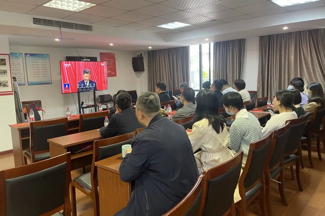 共建仪式结束后,学院教工第一党支部党员与社区党员集体收看党的二十大开幕会,共同见证历史时刻,感受团结、和谐、奋进的时代脉搏。