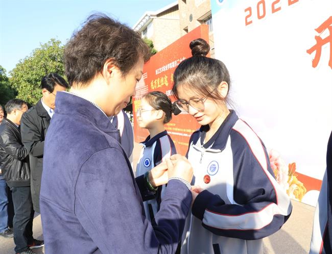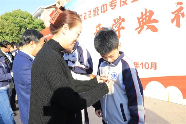 校领导、各二级学院、相关职能部门负责人为新生代表佩戴校徽。