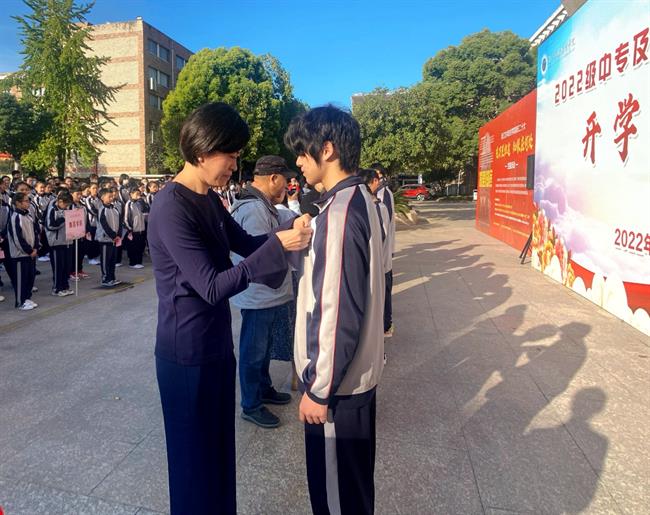 黄杭娟作讲话。她代表学校向全体附中新生表示欢迎,介绍了学校的办学情况和历史成就。在新起点上,她寄语新生们用奋斗书写青春的故事,希望同学们一要听党话、跟党走,厚植爱国情。二要有理想、立大志,实现强国梦。三要不畏险、肯奋斗,谱写新篇章。
