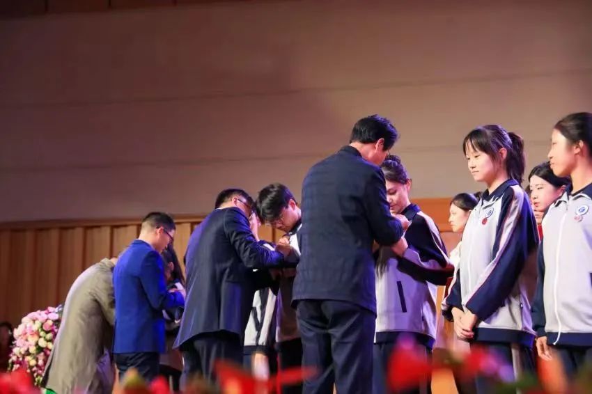 在典礼现场,校领导及学院领导班子成员现场为新生代表佩戴校徽,各教研室和中心主任为2022年上半年练琴之星颁奖。全体新生共同观看学校宣传片,作《音乐学院学生自律十项公约》承诺。