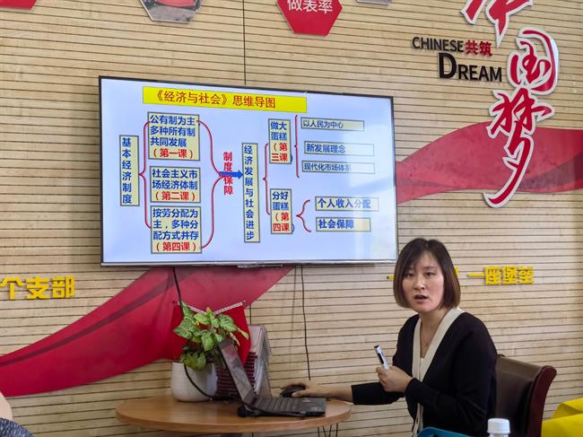 江晓新详细介绍了我校中专初中段《道德与法治》课程三年的教学安排,并根据自己长期担任初中段政治课的教学经验分析了初中政治课教学的走向;朱佩佩从教学目标的变化、教学内容的变化、课程内容的变化以及教学方法的变化的角度介绍了部编版高中《思想政治》课程的主要内容、高考重点以及我校中专政治教学所面临的挑战。马院综合教研室主任张义莎介绍了中职段的四门课程以及《中国特色社会主义》的教学内容;许瑛介绍了《职业道德与法治》的教学内容。高小伶结合自己长期从事中专和高职“跨段”教学经验,认为高中教学和大学教学是阶梯式、渐进式的,如果高中教学强调知识点“是什么”,那么大学教学则更侧重理论“为什么”的阐释,大学老师在授课时更要彰显“是什么-为什么-怎么办”的逻辑力量,也应将教学视角放在世界整体大视野下来讲中国故事。其他各位老师也根据自己的教学感受和研究心得做了发言。老师们一致认为,艺术院校特殊的人才培养方式,其学制呈现多元化复杂性特点,可以实现在一个学校内的全学段教学,给思政课教学共同体的实施提供了便利性。艺术院校思政课教学改革需要充分利用学校本身学制丰富的优势,利用与所属附中思政教学师资和资源,在整体把握不同学段思政课教学目标的同时,从渐进性、层次性出发进行教学内容和教学方法的改革。