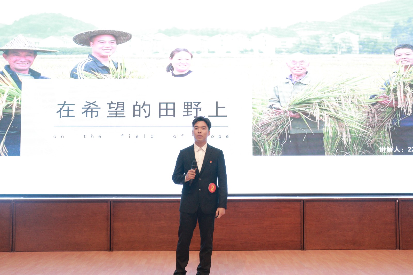 杨之圣同学开篇通过红军游击的紧张情形,让在座的我们体会到革命战士的英勇无畏的品质。他的童年故事以及家中代代相传的红色精神无不使我们感受到他对中国共产党的敬仰与想要加入中国共产党的决心。杨之圣认为一代人有一代人的理想与担当,不变的是那颗追逐理想的心,只有不忘来时路,方能砥砺新征程。