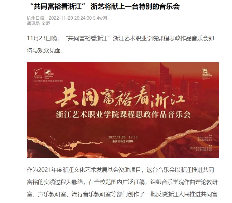 杭州日报:“共同富裕看浙江” 浙艺将献上一台特别的音乐会