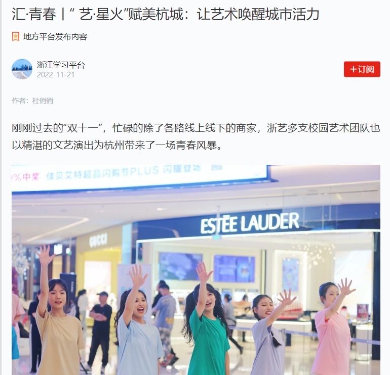 学习强国浙江学习平台:汇·青春丨“ 艺·星火”赋美杭城:让艺术唤醒城市活力