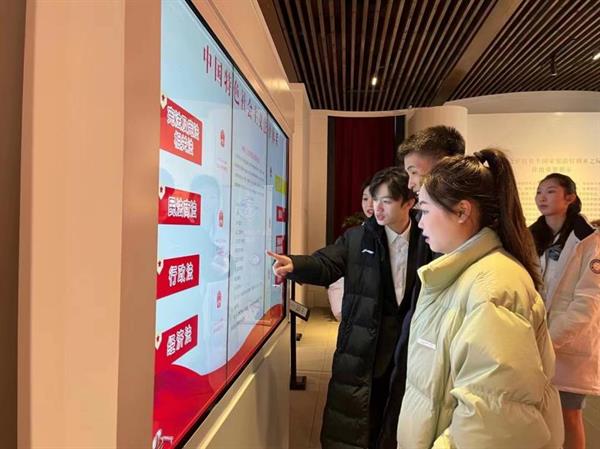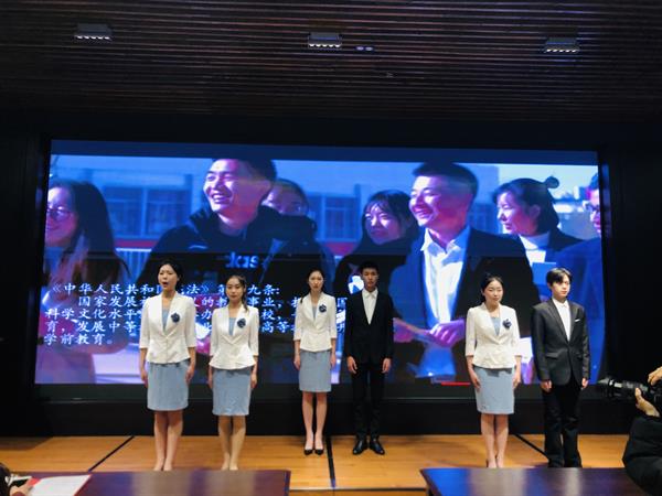 戏剧影视学院通过校馆合作机制,充分发挥校外教育资源,组织学生结合专业特长开展社会实践活动,构建“行走的思政课堂”课程思政体系,用声情并茂、铿锵有力的诗朗诵《为宪法赋诗——那些关于新中国宪法的诗歌》向宪法致敬,弘扬宪法精神。