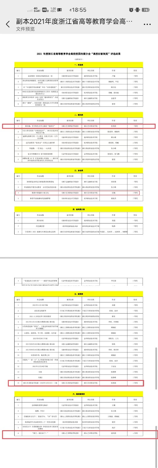 近年来,浙艺媒体一直坚守舆论阵地,积极传播正能量,弘扬真善美,积极践行“举旗帜、聚民心、育新人、兴文化、展形象”的初心使命,挖掘先进典型事例、宣传全校各类活动,多篇报道在人民日报、新华社、央视新闻、光明日报、中国教育报、中国青年报、中国文化报、学习强国、浙江日报等国家级、省市级媒体平台发表,有广泛的阅读量,受到广泛好评。