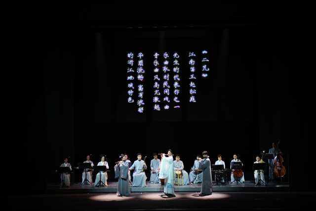 现场,民族管弦乐《听见江南·序》带领观众缓步走入江南人文的历史纵深;骨笛、埙、打击乐和人声而作的器乐曲《良渚回响》描绘了浙江地区远古先民们劳作时欢快热烈的生活图景;筝与室内乐《高山流水》在编配上精妙设计布局,赋予原曲新的意韵;民族管弦乐《诗画浙江》生动呈现了江南水乡的诗情画意……一首首乐曲,散发出浓郁的江南气息,令人陶醉。