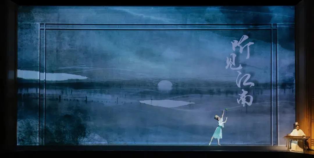 整场演出不设导聆,开场一人坐于舞台右侧抚琴,在悠远的古琴声中,我们的目光追随着“荷花仙子”的灵动身姿,沉浸在“听见江南”的诗画中。