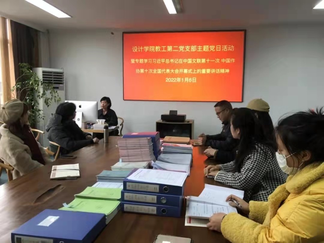 2022年新年伊始,设计学院党总支下属教工第一、二党支部和学生党支部分别开展1月主题党日活动暨专题学习习近平总书记在中国文联十一大、中国作协十大开幕式上的重要讲话精神。通过学习,师生充分认识到,要积极承担起社会主义文艺繁荣的责任,在培根铸魂上展现新担当,在守正创新上实现新作为。学院领导班子和全体党员都认真完成了学习交流并撰写了心得体会。