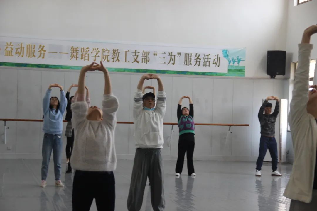 近日,舞蹈学院教工党支部开展“红舞先锋·益动服务”,利用艺术优势和专业特长传承中华优秀传统文化,带领全校教职工大家“益起”动起来,美起来。
