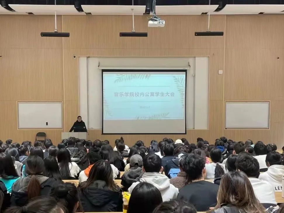 刘梦伟对“四项检查”(晚出晚归检查、寝室卫生检查、违禁电器检查、校服穿着检查)做了详细解读,要求学生自觉做到“四项清零”;其次,他从政治安全、防疫安全、生命安全、财产安全、交通安全、食品安全等方面做了要求。他介绍了学校“十四五”发展规划关于“撤系建院”和“做强中职”的重大战略规划,希望全体学生深刻认识当前的新形势、新目标、新要求,刻苦学习,保持旺盛的学习热情和顽强的拼搏精神,不断提高专业、文化知识,努力使自己成为德智体美劳全面发展的音乐新苗。