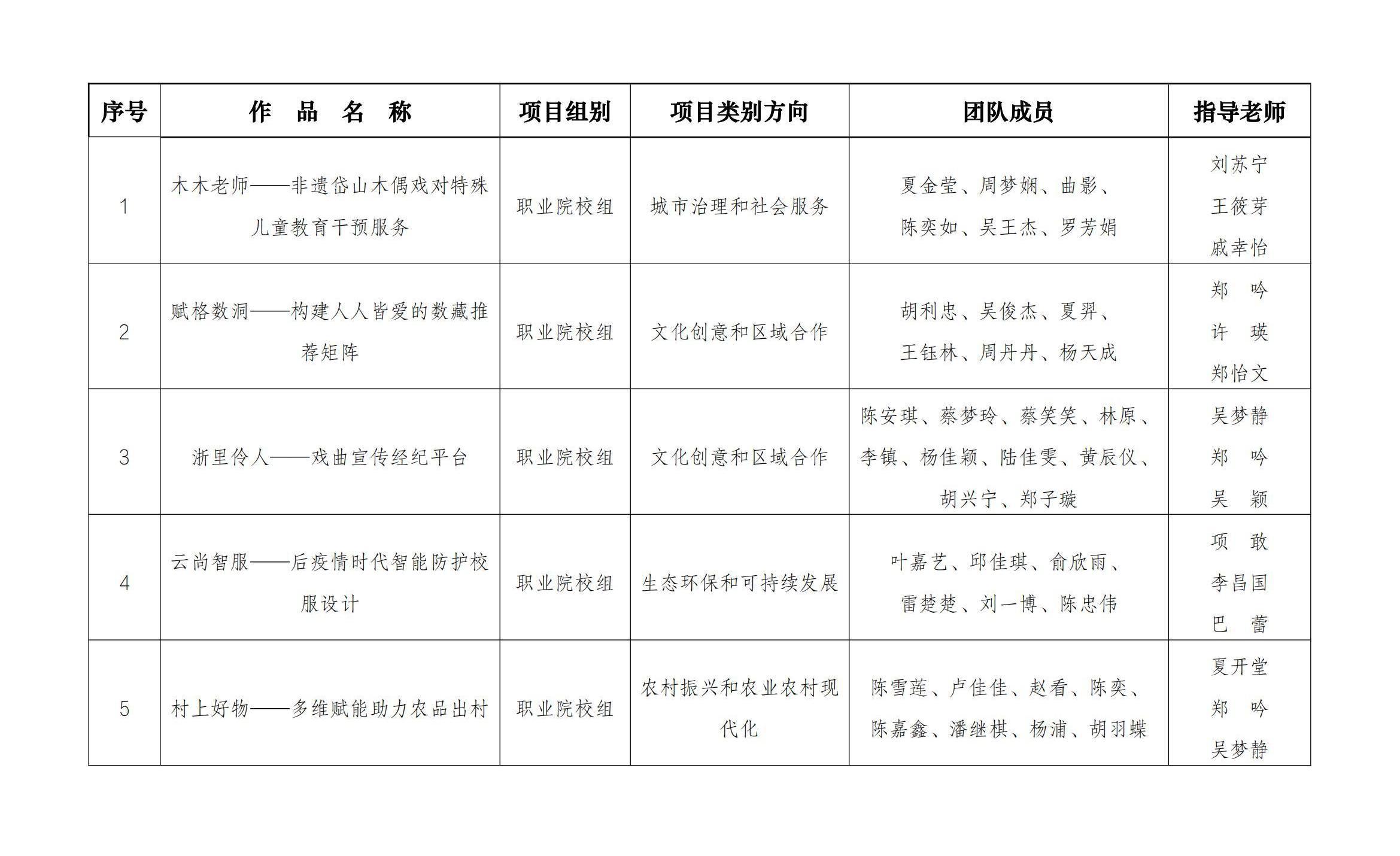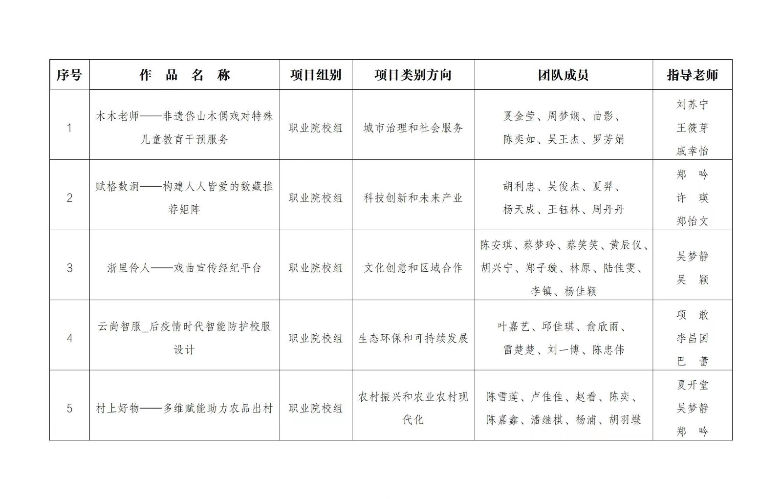 关于推荐《木木老师——非遗岱山木偶戏对特殊儿童教育干预服务》等5个项目参加浙江省第十三届“挑战杯”大学生创业计划竞赛的公示