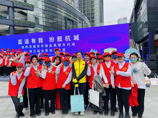 4月1日,由杭州市城管局和高新区(滨江)共同举办的“亚运有我 扮靓杭城”杭州市城市环境品质提升行动滨江站全民动员大会在星光大道举行。我校戏剧影视学院选派35名学生组成“艺光印象”志愿服务队参加。
