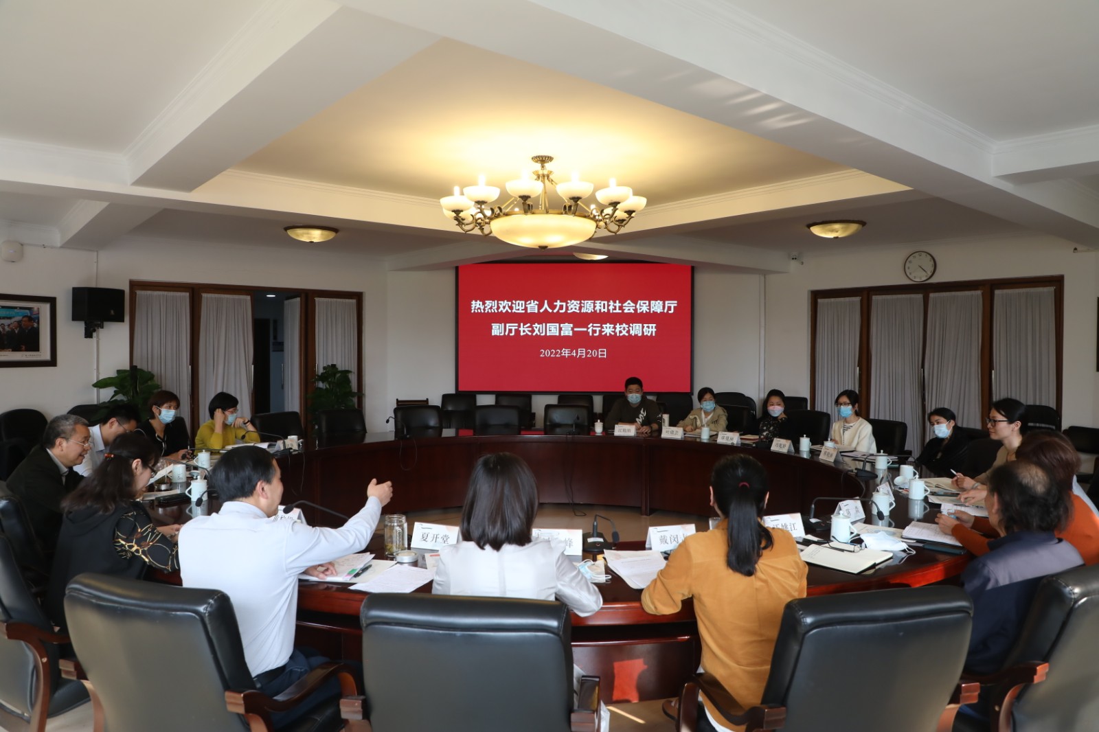 4月20日,省人力社保厅党组副书记、副厅长、一级巡视员刘国富带领省人力社保厅工资福利和奖励处、职业能力建设处等处室负责人来我校调研指导。