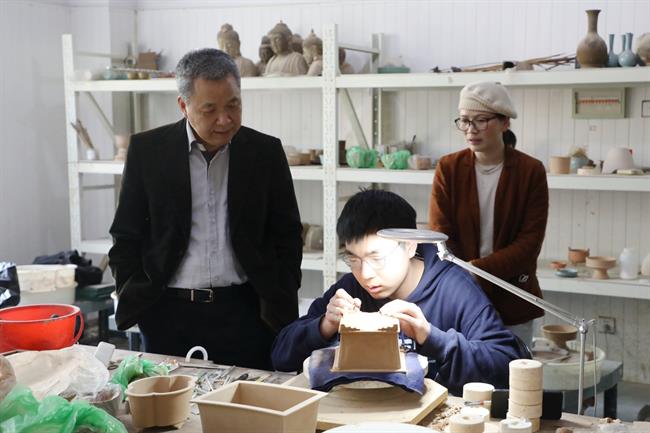 在院长黄杭娟、党委副书记夏开堂陪同下,刘国富一行实地查看了学校戏曲学院、音乐学院、舞蹈学院、手工艺学院的教学场地和课堂教学情况,详细了解了学校的办学特色、专业设置、艺术人才的培养机制和师资队伍建设等情况。