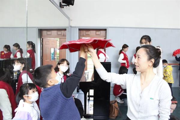 在吕静老师的带领下孩子们了解到了独特的越剧唱腔,还学会了“天上掉下个林妹妹”的越剧唱法。