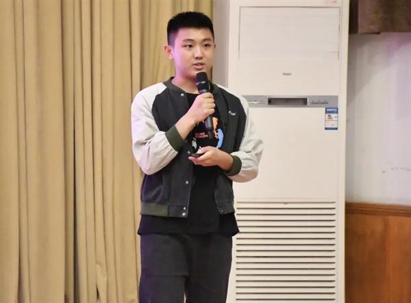 21多媒体1班刘文佑从自己的家乡变化出发,坚定了自己入党的决心,他列举了多个学校榜样的事例,希望大家只争朝夕,不负韶华!