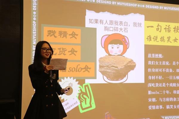第三个汇报项目为《成为道士的第n天》,酷爱剧本杀的汇报人陈孝飞创造了一个和她一样热爱剧本杀的郑挽歌,在故事中,郑挽歌在玩完线下古风剧本杀《挽歌情》后穿越到宋代,成为身无分文的女道士,为了生活她只能利用道士的名号招摇撞骗。却不巧摊上了命案,郑挽歌该如何改变自己的命运?