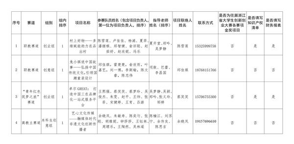 根据《浙江省大学生创新创业大赛组委会关于举办“建行杯”第八届浙江省国际“互联网 ”大学生创新创业大赛的通知》的相关规定与要求,我校共有4个省赛推荐名额,其中高教主赛道名额1个,“青年红色筑梦之旅”赛道名额1个,职教赛道名额2个。