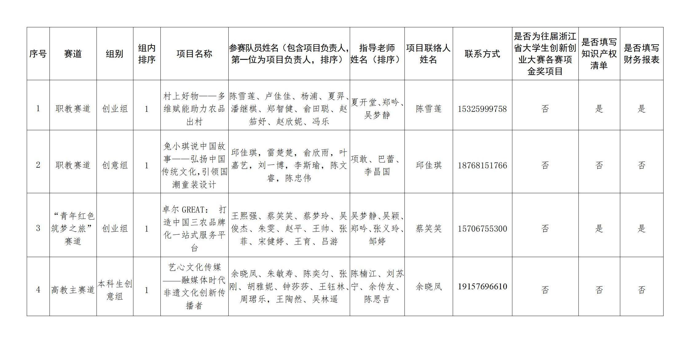 关于推荐《村上好物——多维赋能助力农品出村》等4个项目参加第八届浙江省国际“互联网+”大学生创新创业大赛的公示