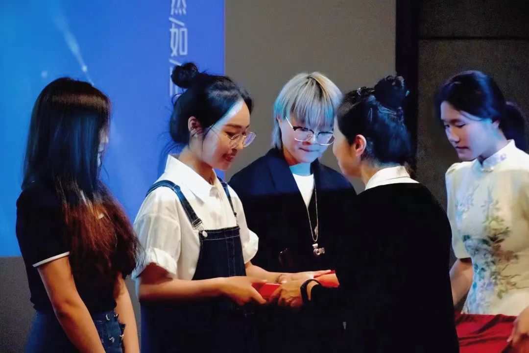 许瑛宣读了2022届校友联络员名单,聘选17模特一贯胡慧鹃、17影视一贯刘子炫、19戏剧影视表演沈豪杰、19多媒体刘欣雨、19摄影摄像1班樊柔驿、19摄影摄像2班蔡晓乐、19声像工程郑仁敏、19音像技术赵景晨、19影视编导杨巧雨、19多媒体扩招周智涵等10位同学为戏剧影视学院2022届校友联络员。