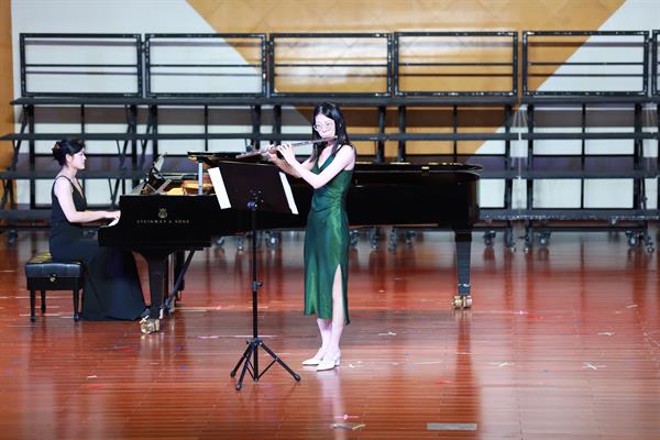 第二首曲目是普朗克《e小调长笛奏鸣曲(第一乐章)》,卢奕含的长笛与郑好的钢琴伴奏配合默契,准确的把握了乐曲的均衡感,将我们带到了法国新古典主义音乐中,惆怅之意与欢快的节奏交替出现,色彩对比强烈。