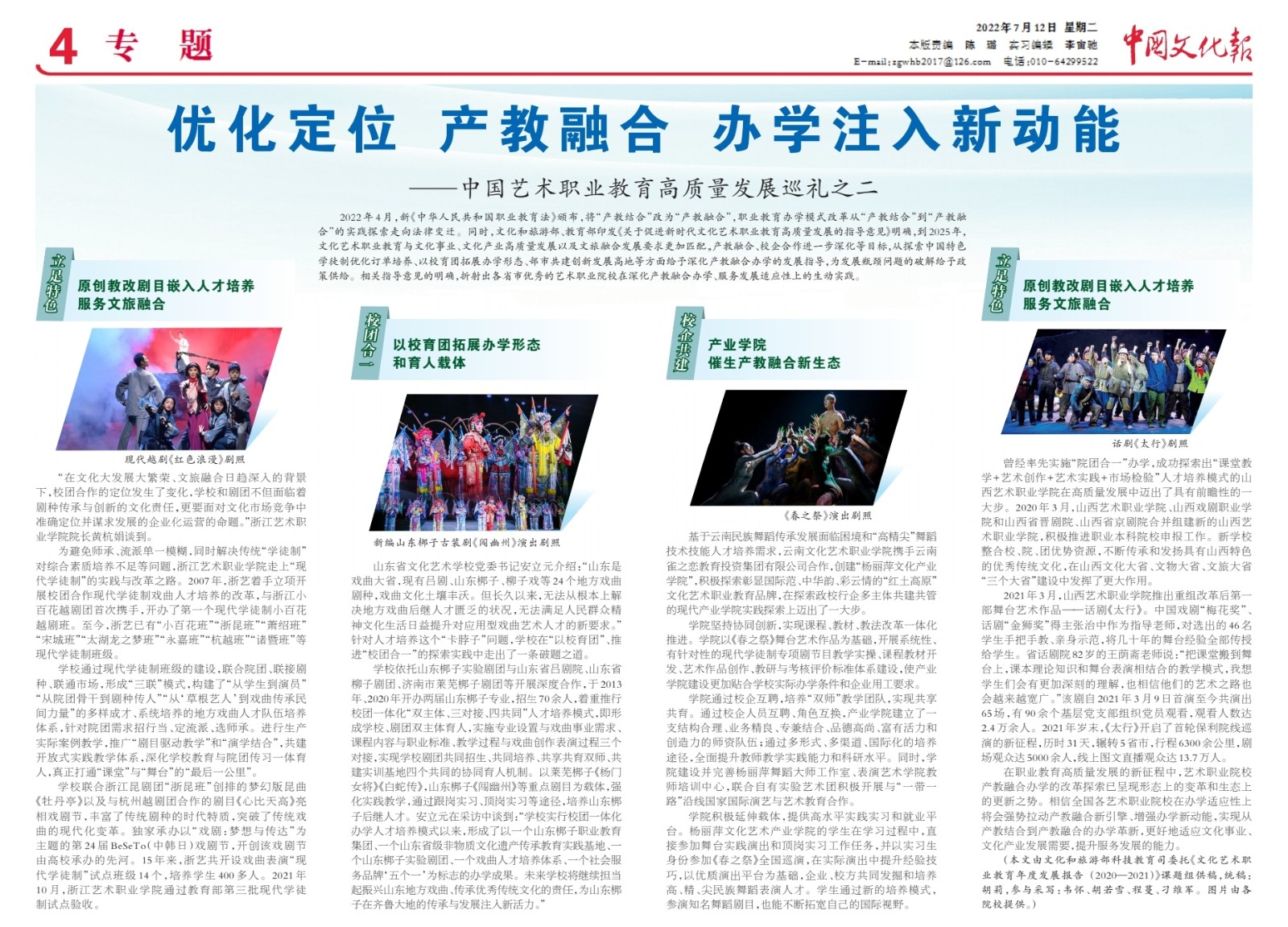 中国文化报:优化定位 产教融合 办学注入新动能——中国艺术职业教育高质量发展巡礼之二