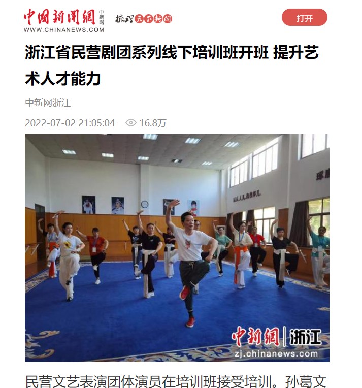 中国新闻网:浙江省民营剧团系列线下培训班开班 提升艺术人才能力