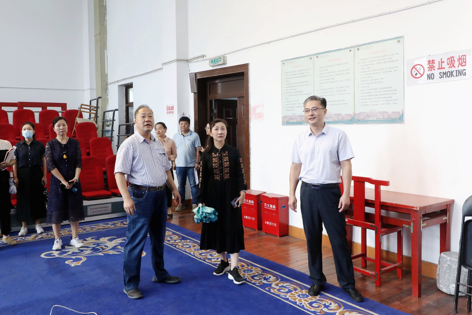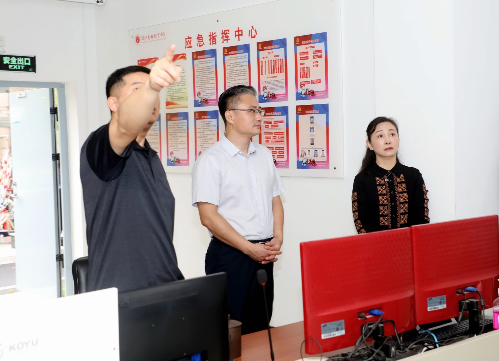 检查过程中,检查组对学校消防监控室、音乐厅、2号楼小剧场、黑匣子剧场、浙江实验艺术剧场、各专业实训室、琴房、食堂、高配电房、校内公寓、东冠校区留观点等进行走访查看,检查安全制度是否健全、安全责任是否明确、消防器材是否完好有效、消防疏散通道是否堵塞、疏散指示灯是否完好、防坠楼装置是否安装、校园重点区域环境卫生状况是否安好、食堂环境卫生状况等。