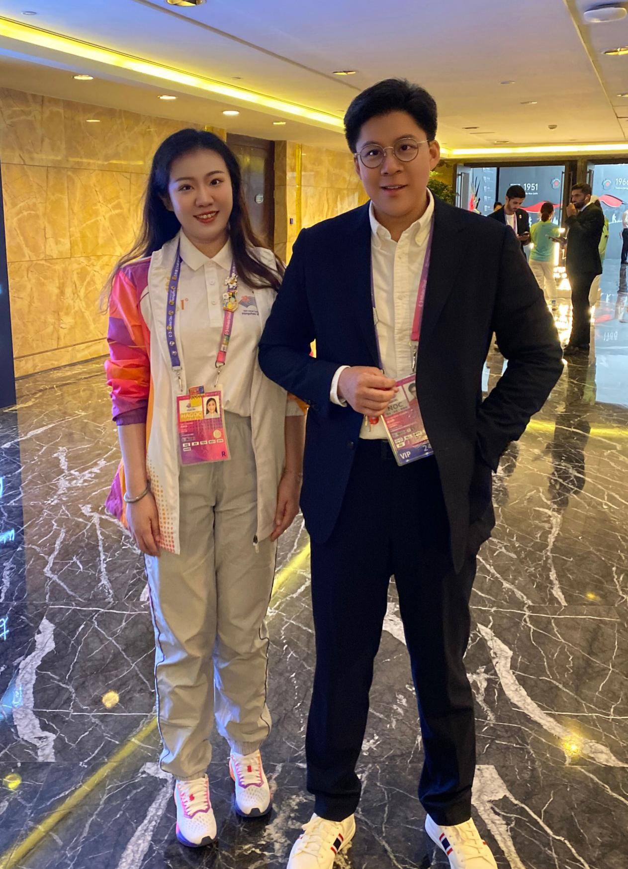 在亚运期间,我服务的贵宾是来自亚奥理事会副主席Takeda Tsunekazu先生,在交谈相处后,发现Takeda先生是一位非常具有体育精神的人,他的每一场观赛都非常专注。他曾经是一位马术运动员,在马术赛事期间我陪同Takeda先生每天前往桐庐马术中心,我也第一次关注到马术这项运动。这是所有的赛事中唯一一项运动员与动物同场竞技的运动,赛程中不乏出现骑手与马匹配合不当以至于被甩下马的情况,深刻体会到每一项运动的精彩与不易。在亚运赛事期间,Takeda先生多次为竞赛获胜者颁奖,我也有幸全程见证了幕后工作人员有效的引导,深感荣幸自己也能成为亚运工作者之一,每一个场馆、每一个领域的工作人员、志愿者都展现了杭州人民独特的魅力风采。此次亚运之行,对我来说,感触颇深,感谢浙艺提供了一次亚运限量版体验,希望可以将亚运精神带回浙艺继续传递下去。