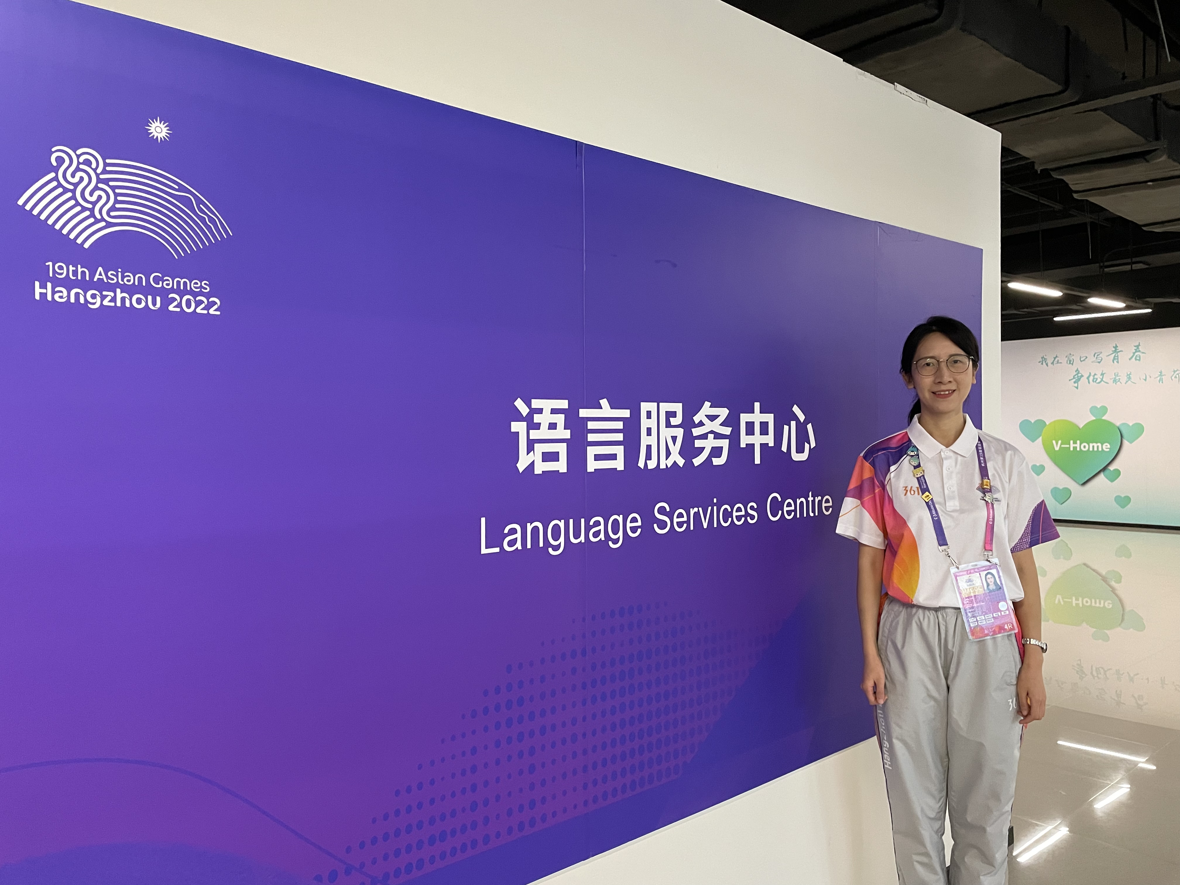 我于2022年2月抽调至杭州亚组委语言服务团队担任口译副主任一职,为亚运会专业口笔译服务提供保障。近600天的语言服务工作中,我深深体会到“The success of language services is how much it is not noticed. ”如果在赛会中没人注意到我们的工作成果,那么为大型赛事保驾护航的工作就算成功了。但是,语言服务要“默默无闻”绝非易事,整个筹备工作要一丝不苟,充满艰辛和挑战。我负责各竞赛场馆语言服务筹备工作,测试竞赛场馆远程翻译设备,多方合作,确保亚运期间百余场赛后新闻发布会同传和交传服务顺利进行。此外,亚运筹备阶段,我还负责各类文件、场馆标识、来往信函等材料的翻译审校。该工作需要较强的英语语言能力且细心严谨。任何对外发布的译文,稍有差池,可能会引发舆论。这也促使我不断学习,提升业务能力。为提升亚运工作者英语口语能力,语言服务团队还筹备了英语培训课程。期间,我负责评估授课需求、制定授课方案、筛选授课素材,就授课内容及课程录制提出修改意见,为亚组委和场馆员工、语言服务志愿者英语学习提供高质量课程。亚运会语言服务工作是一段难忘的经历,能用自己的专业致力于亚运会的传“意”、发“声”,我非常荣幸!