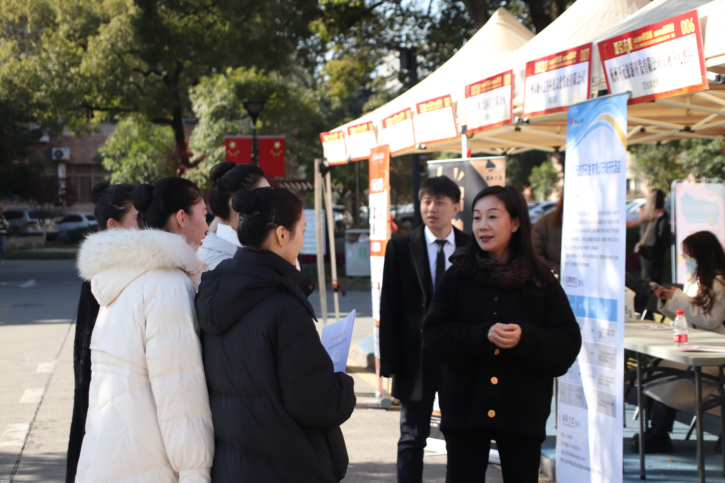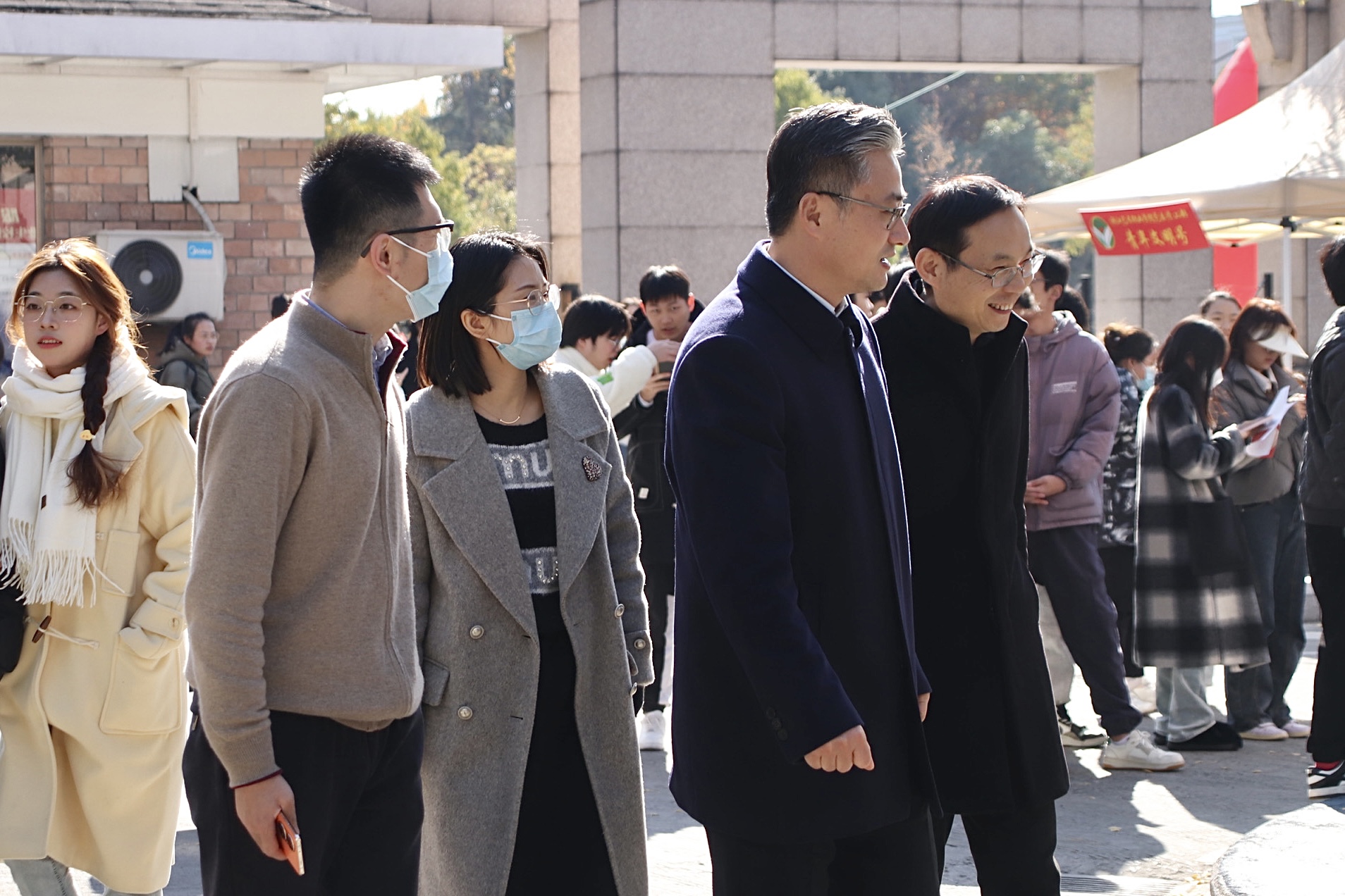 校党委书记薛亮,院长、党委副书记施俊天来到招聘会现场,与多家企业代表交谈,了解今年的单位需求和就业形势,并与应聘学生、就业一线工作老师深入交流。各二级学院相关负责人、辅导员和招生就业办工作人员到场为学生提供就业指导服务。